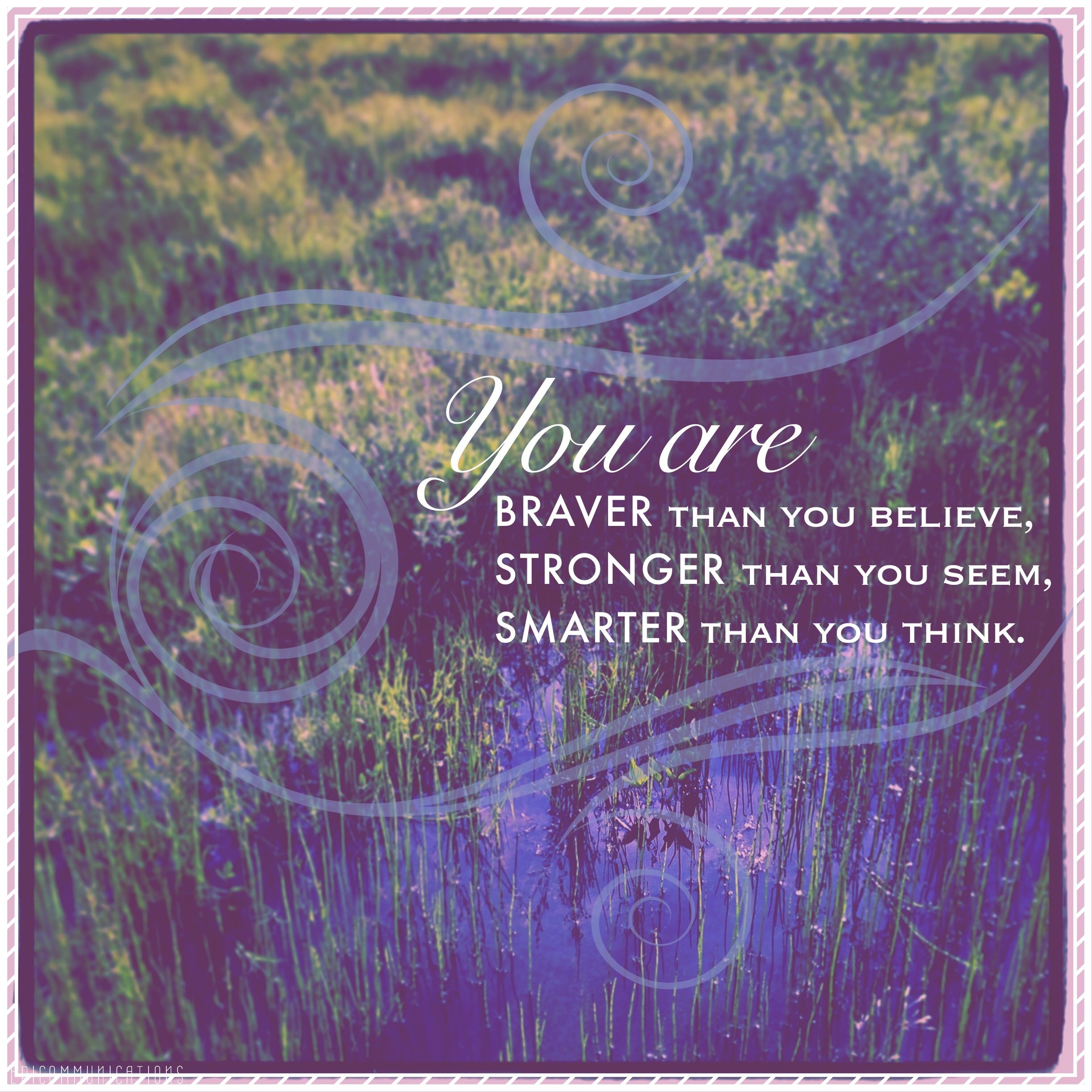 “You’re braver than you believe, stronger than you seem, and smarter than you think.” ~ A.A. Milne from Winnie the Pooh